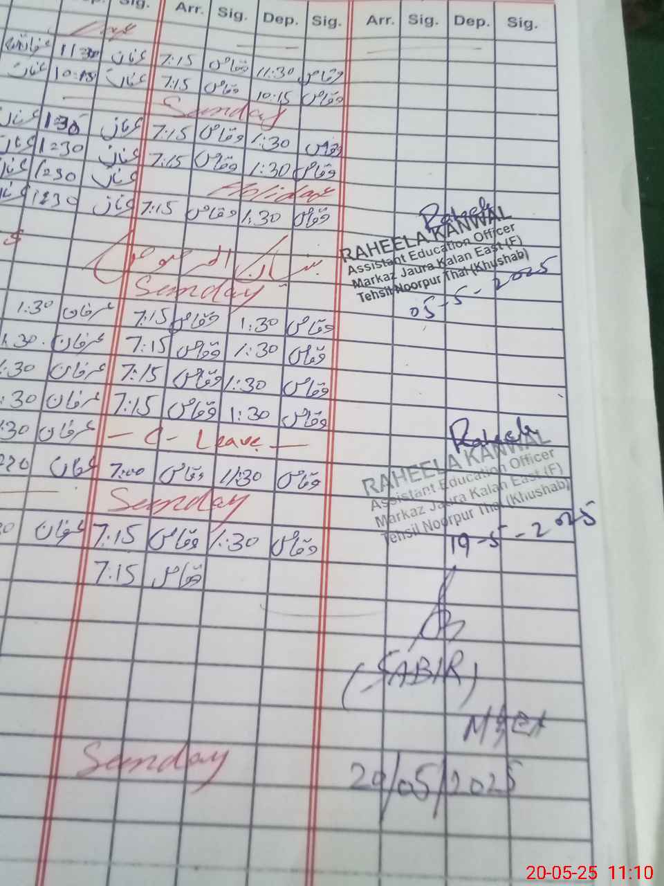 | CNIC | Full Name | Designation | R/C | Absence During Last Calender Month |