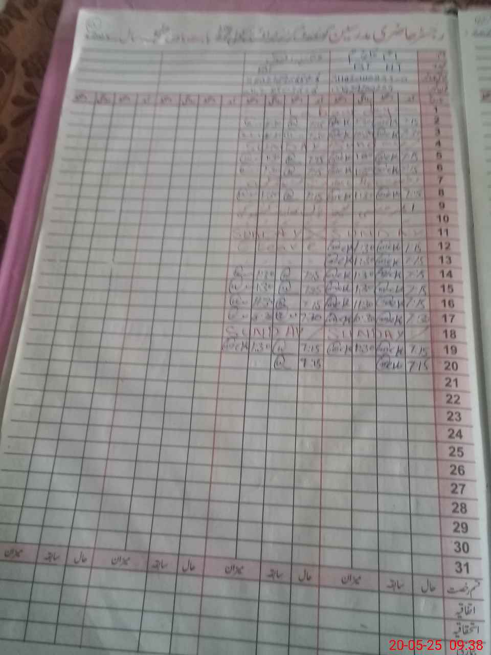 | CNIC | Full Name | Designation | R/C | Absence During Last Calender Month |