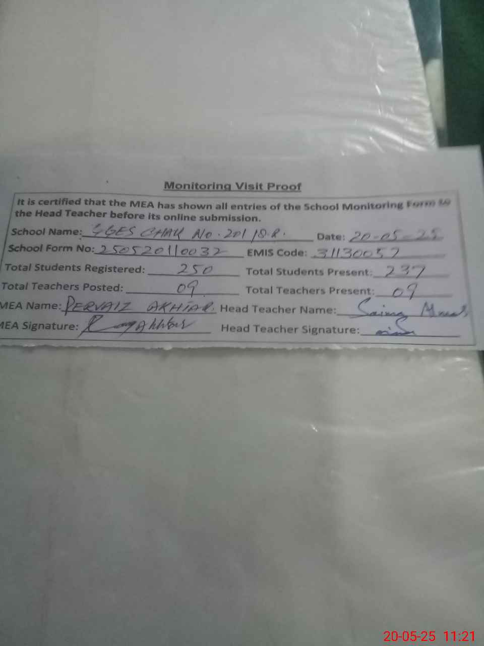 | EMIS Code: 31130057 | Name of School: GGES CHAK NO. 201/8-R P/O KHICHI WALA | |||