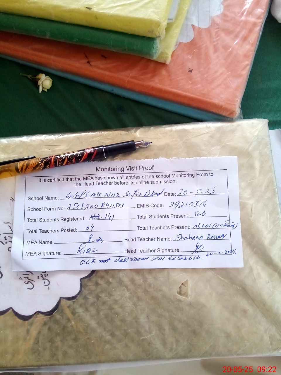 | Certified that this School was Inspected by the Undersigned MEA/DMO Today and the Information Stated Above is as Per Record. | |||||