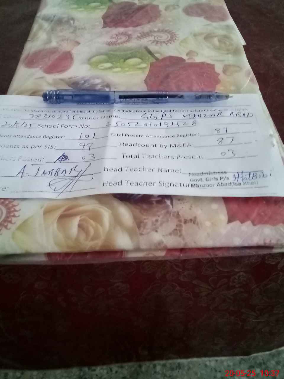 | EMIS Code: 38310235 | Name of School: GGPS MANZOOR ABAD ISA KHEL | |||