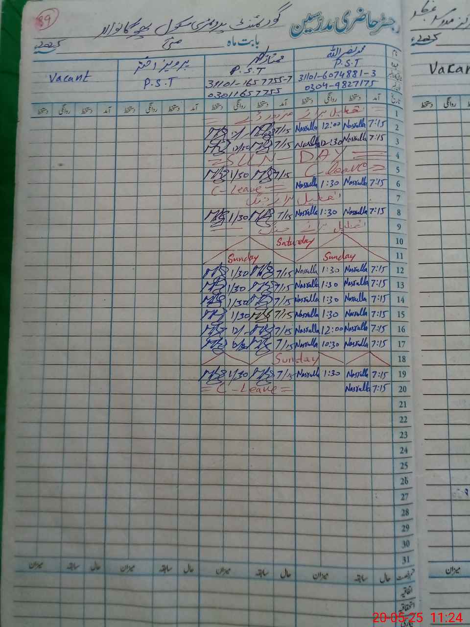 | 31**** | Mu**** Pa**** Ak**** | ESE | Contract | 0 | 0 | 0 | 0 | 0 | 0 | 0 | 0 | 0 | Absent (Un-Authorized) |