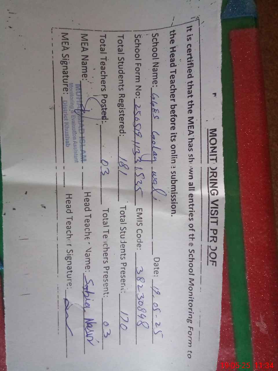 | EMIS Code: 38230848 | Name of School: GGES GOLAY WALI | |||