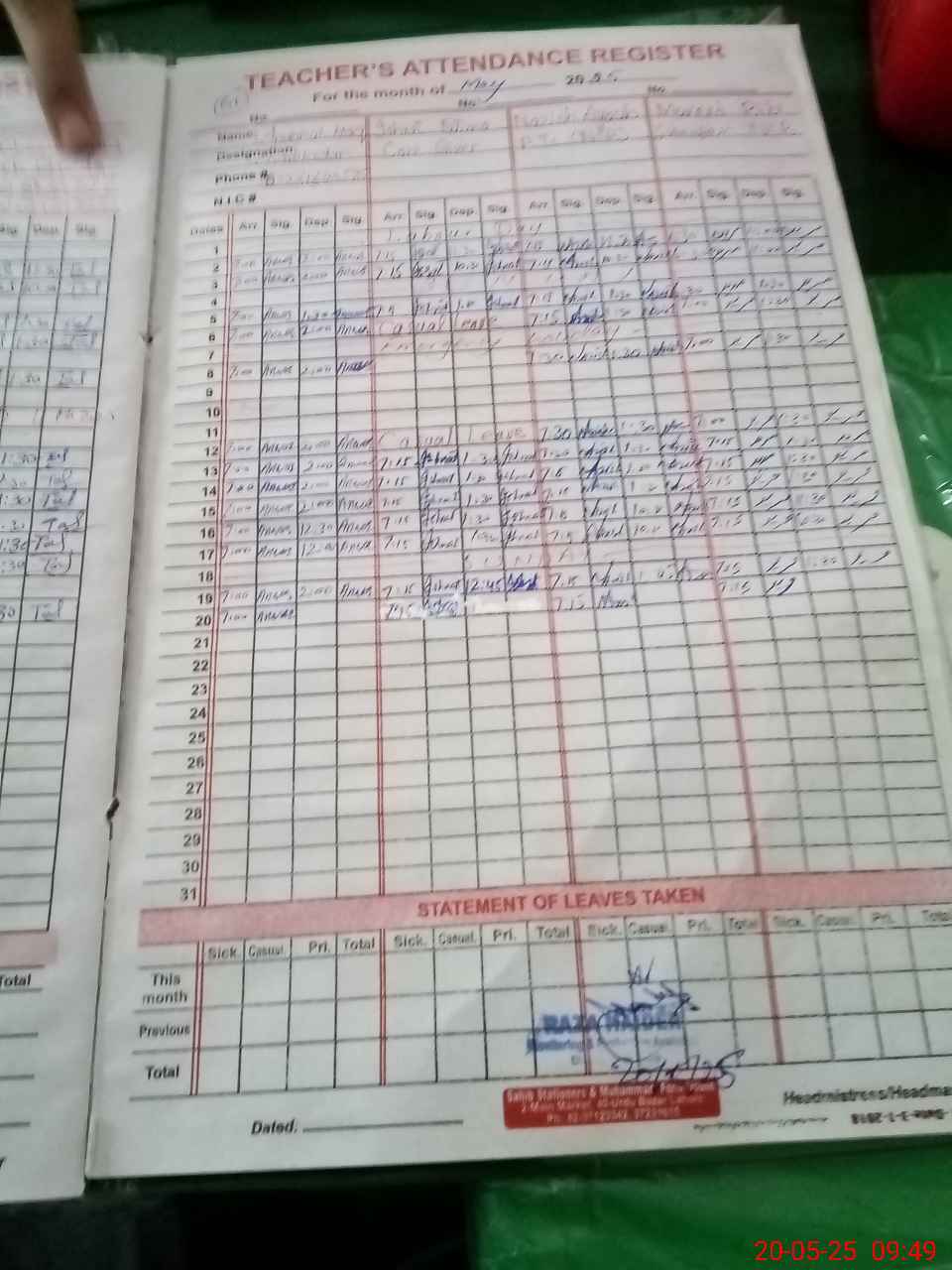 | 38**** | Fa**** Za**** | 4 | 2 | 0 | 0 | 0 | 0 | 0 | 0 | 0 | 0 | 0 | Exam Duty |