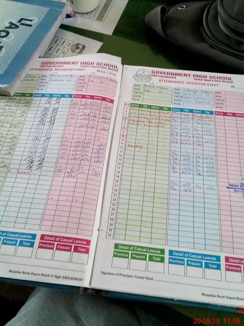 | CNIC | Full Name | Designation | R/C | Absence during last cal. month |