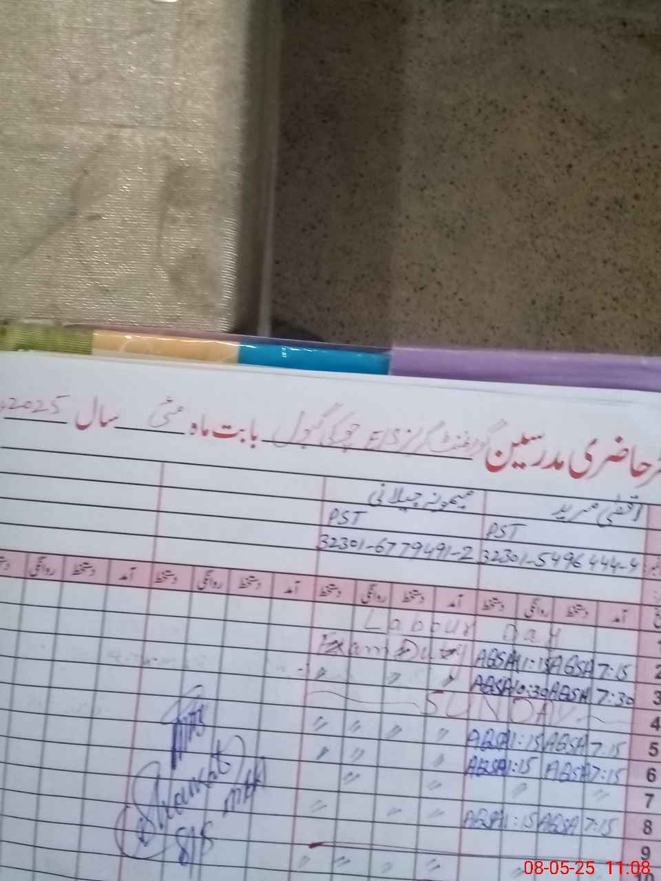| Name: SH**** ZE**** Designation: (School Headmaster's/Headmistress's) EST Phone/Cell Number: 03**** |