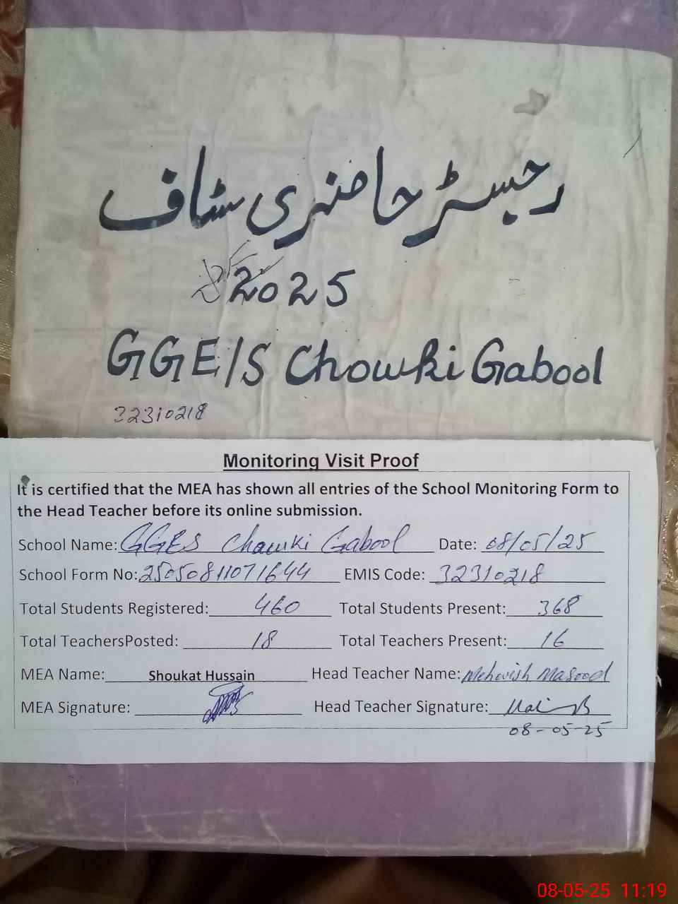 | EMIS Code: 32310218 | Name of School: GGES CHOWKI GABOOL | |||