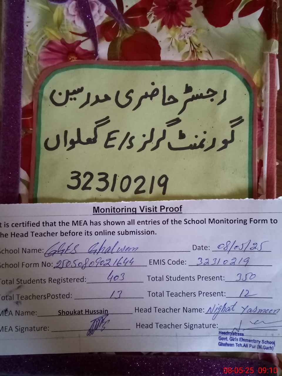 | EMIS Code: 32310219 | Name of School: GGES GHALWAN | |||