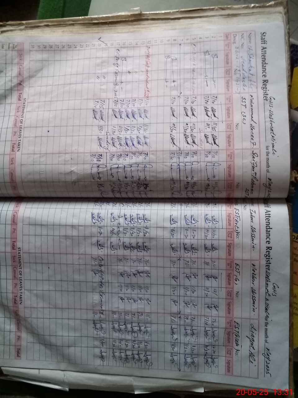 | Remarks (Use Separate Page if Required): MUHAMMAD FARHAN EST AT FOUND UN AUTHORISED ABSENT FROM DUTY NO CASUAL LEAVE PROOF FOR APPROVED IS AVAILABLE ON SIS HRMS LESSON PLANS ARE NOT AVAILABLE NSB GRANTS AND FTF RECORDS ARE NOT MAINTAINED FORMS D4 FOR DISTRIBUTION OF BOOKS ARE NOT AVAILABLE NSB GRANTS RECORDS UPTO FEBRUARY 2023 IS MAINTAINED BANK STATEMENTS UPTO 02 OCTOBER 2024 IS AVAILABLE WASH CLUB RECORDS ARE ALSO NOT AVAILABLE RANDOM CLASS TEN IS NOW PASSED OUT FROM THIS SCHOOL | |||||