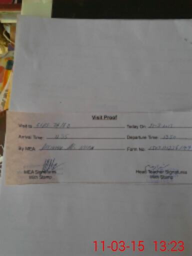 | Attendance Register | Head Teacher | MEA with School | Visit Proof |