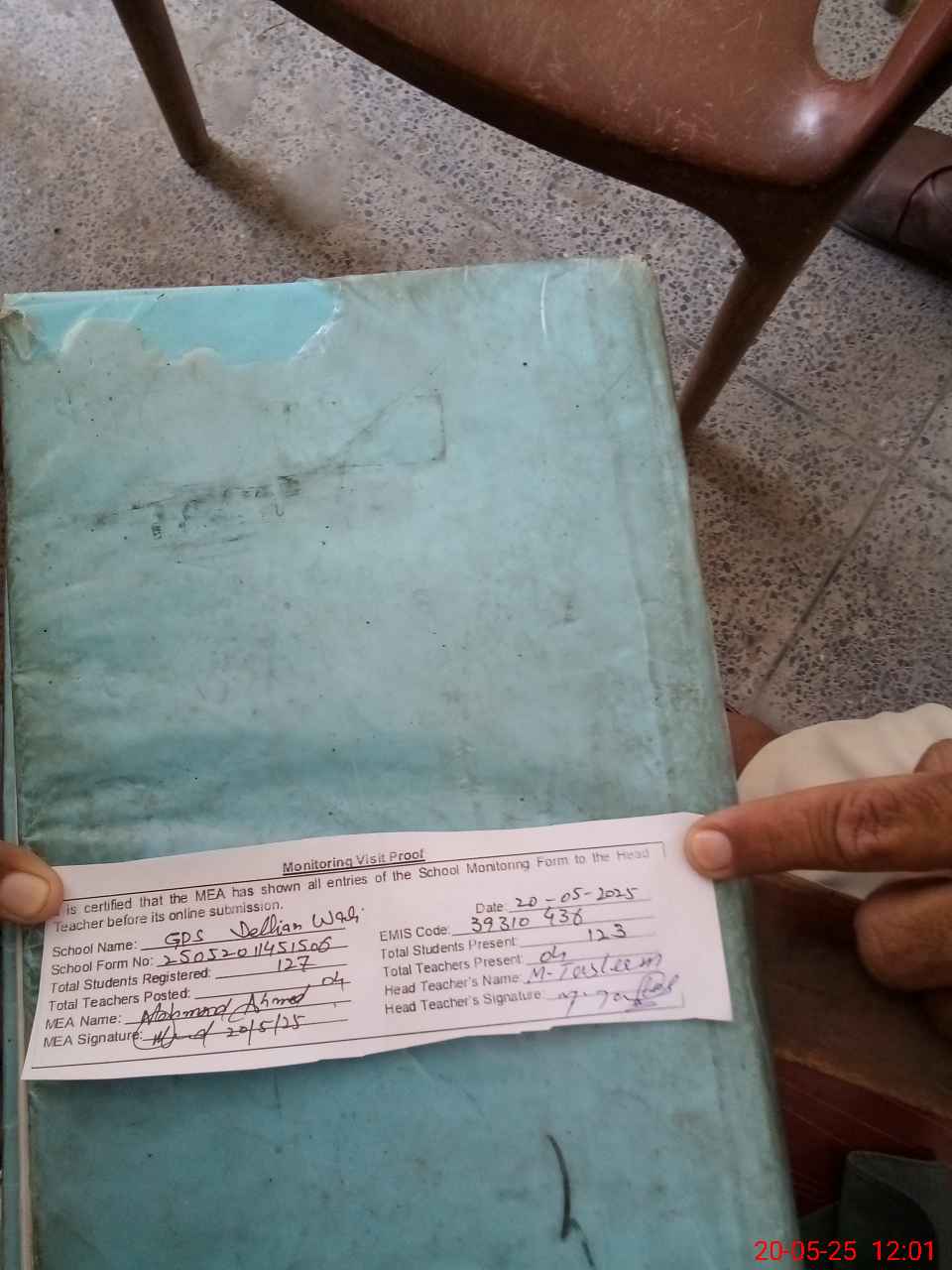 | Attendance Register | Head Teacher | MEA with School | Visit Proof |