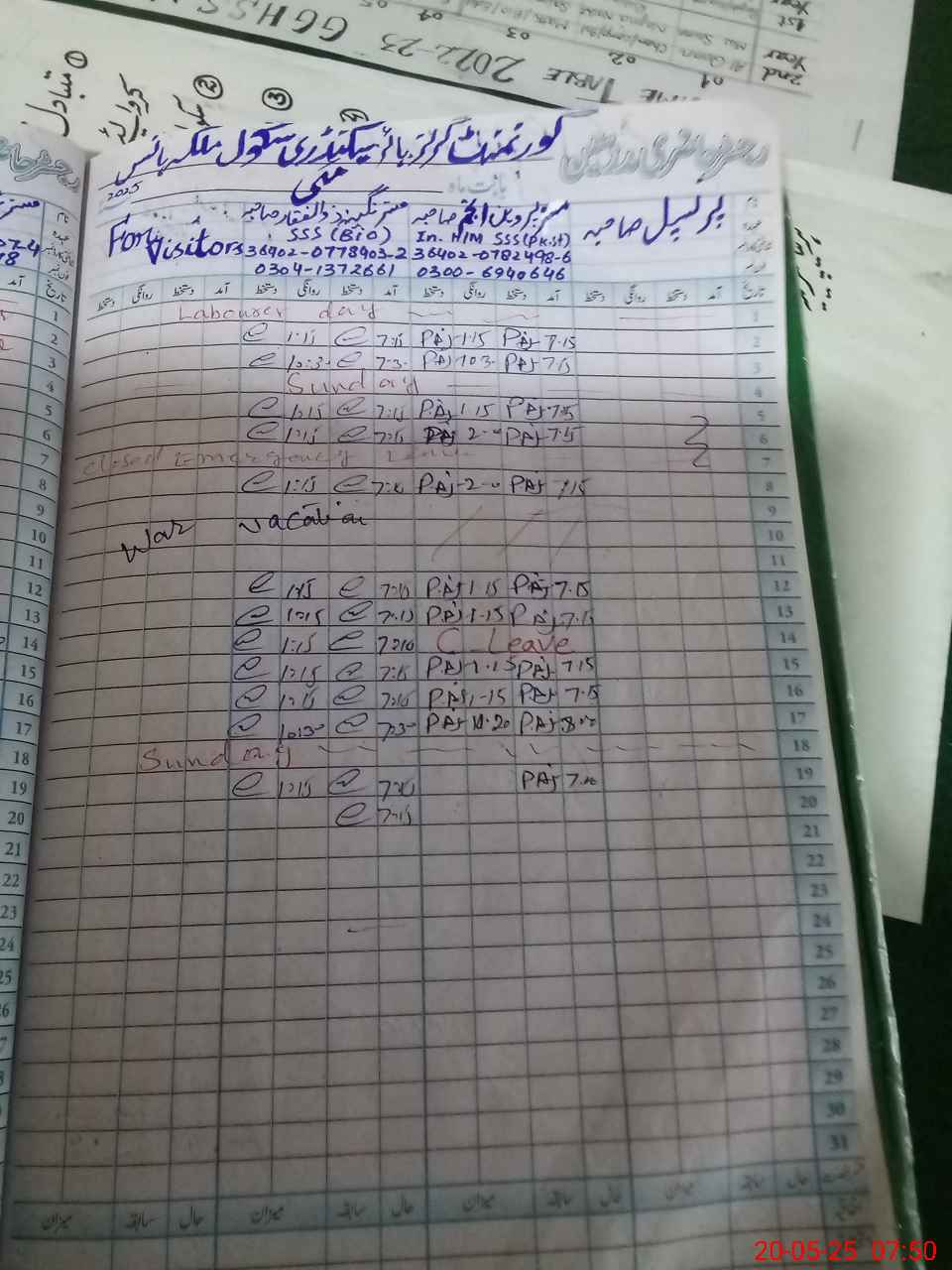 | Name: Pa**** An**** Designation: (School Headmaster's/Headmistress's) INCHARGE ,PRINCIPAL Phone/Cell Number: 03**** |