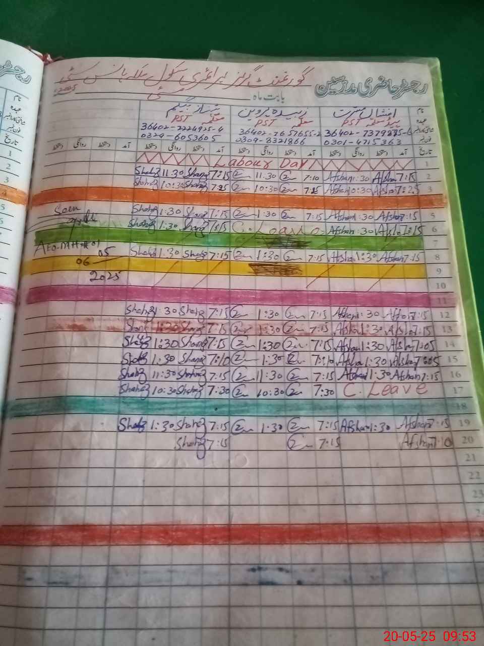 | CNIC | Full Name | Designation | R/C | Absence During Last Calender Month |