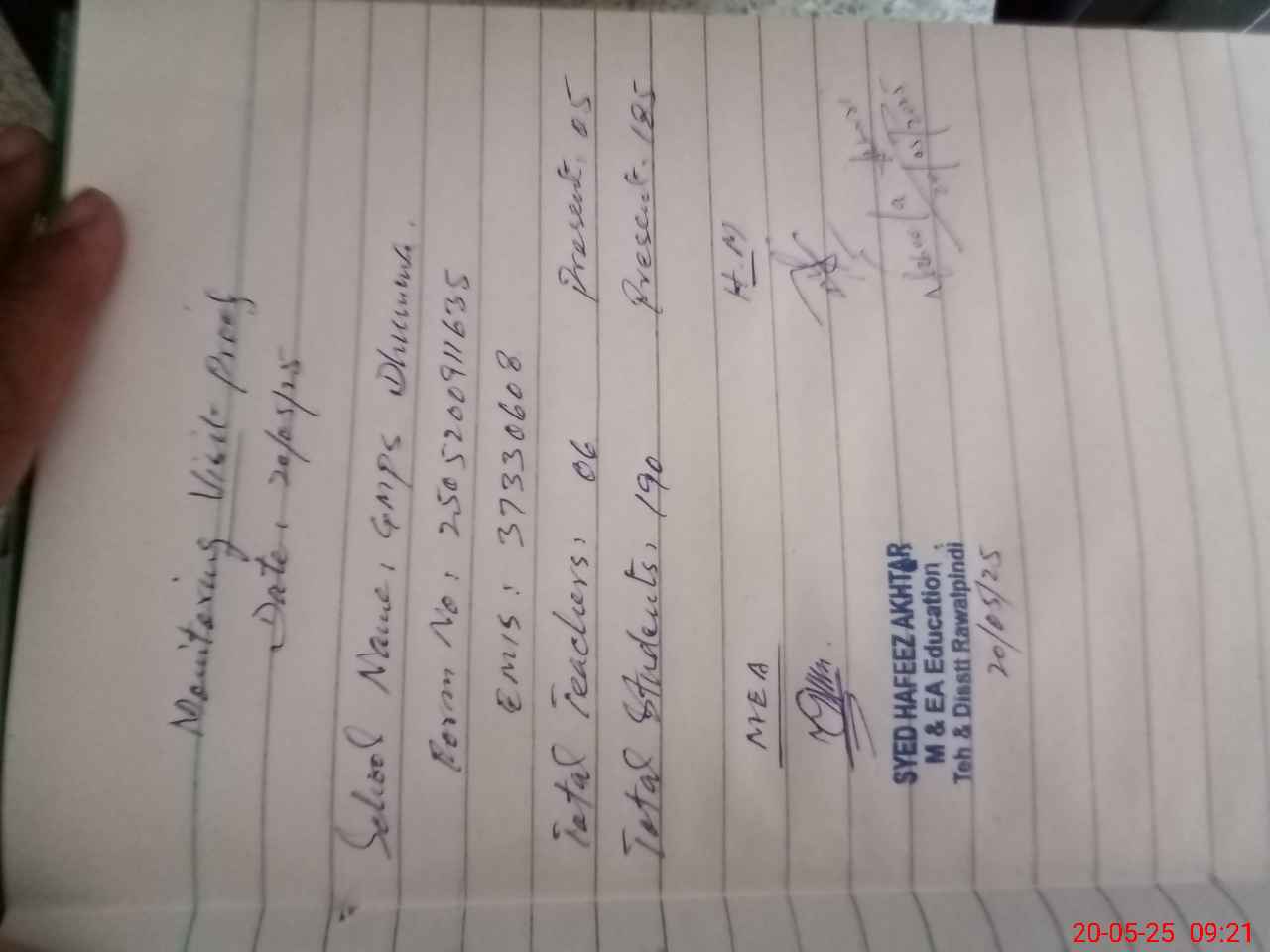 | Remarks (Use Separate Page if Required): NSB record not updated in PMIU and SIS both Apps Students of class 2 listed in pmiu app are not updated 05 students are in class 5 now while rest all students have left school after promotion from class 5 | |||||