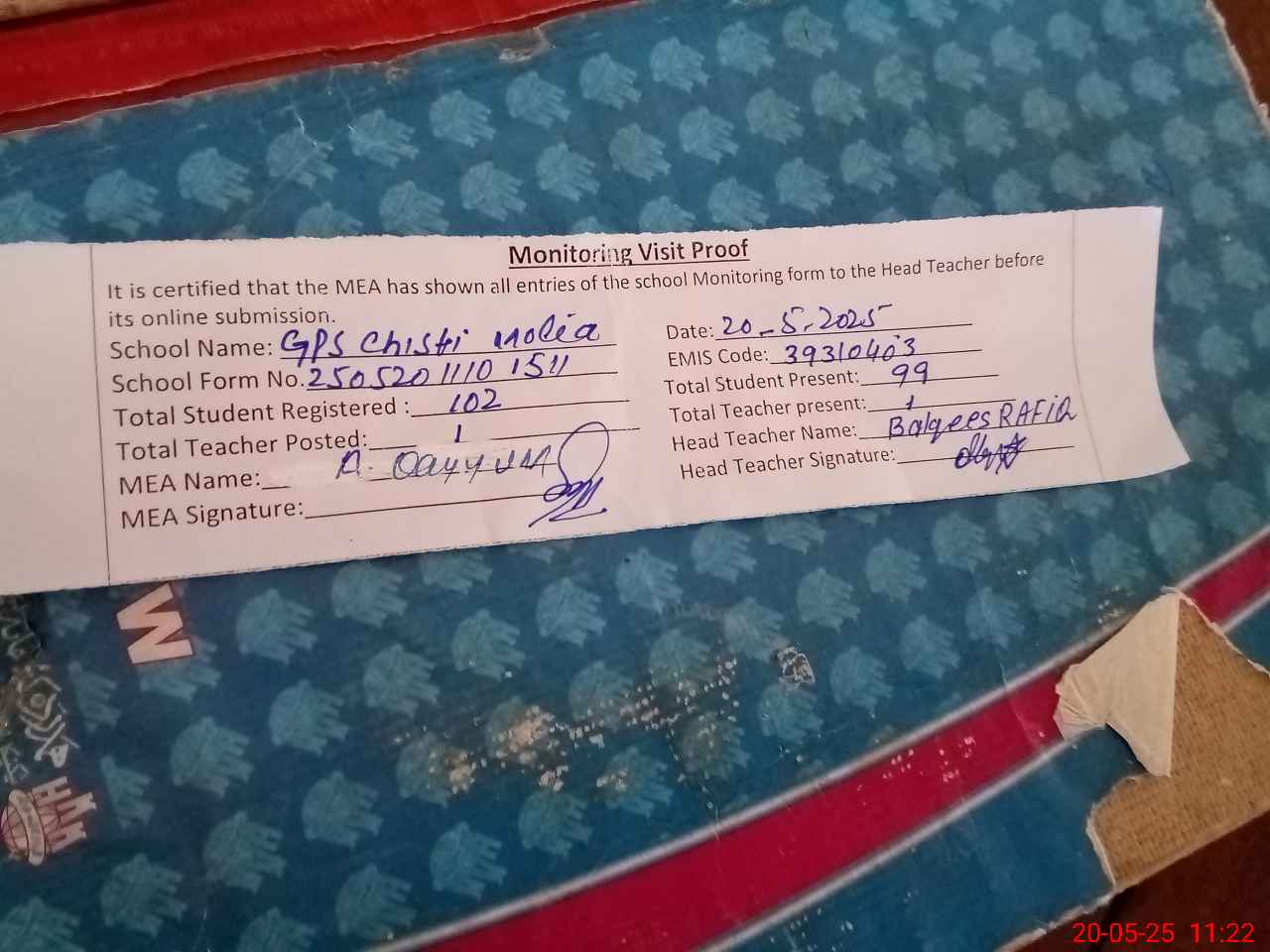| EMIS Code: 39310403 | Name of School: GPS CHISHTI MOLIA | |||