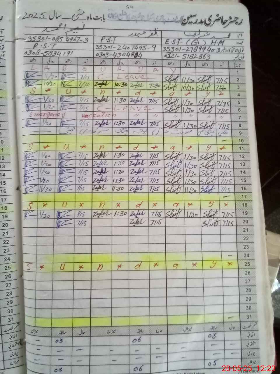 | Name: Mu**** Sh**** Designation: (School Headmaster's/Headmistress's) EST GEN Phone/Cell Number: 03**** |