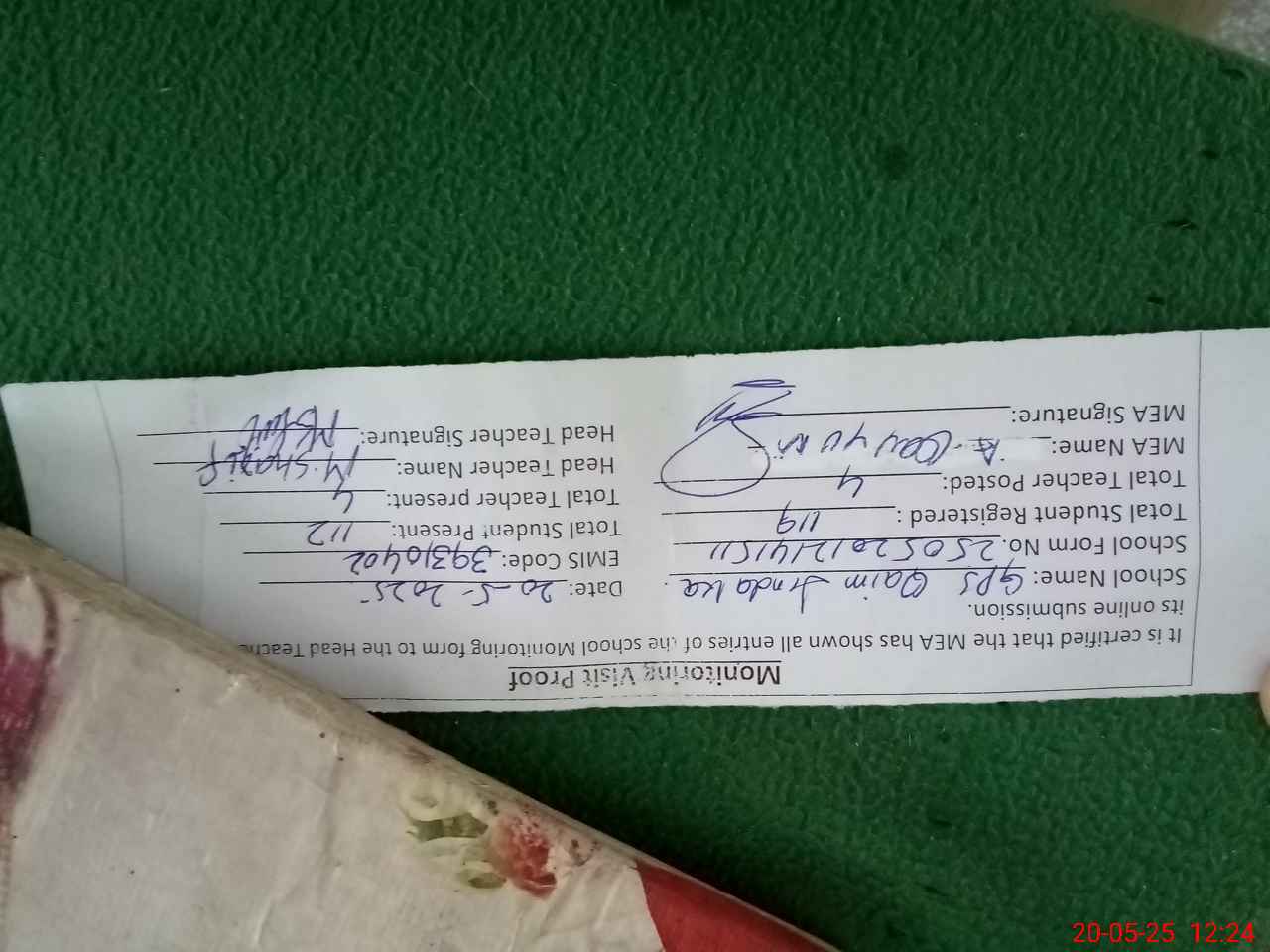 | Attendance Register | Head Teacher | MEA with School | Visit Proof |