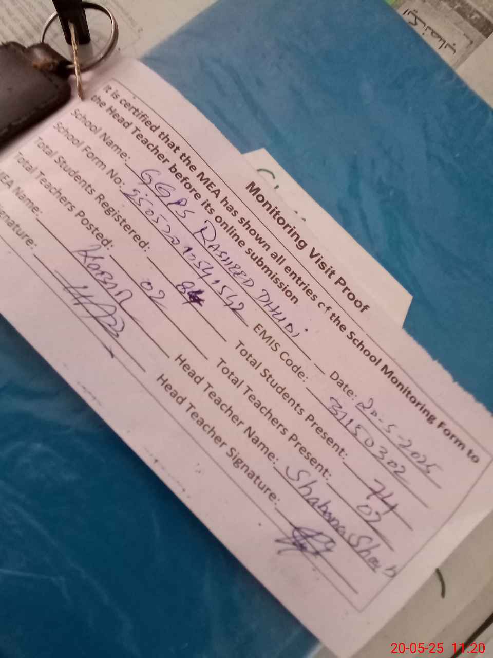 | EMIS Code: 31150302 | Name of School: GGPS RASHEED DHUDDI | |||