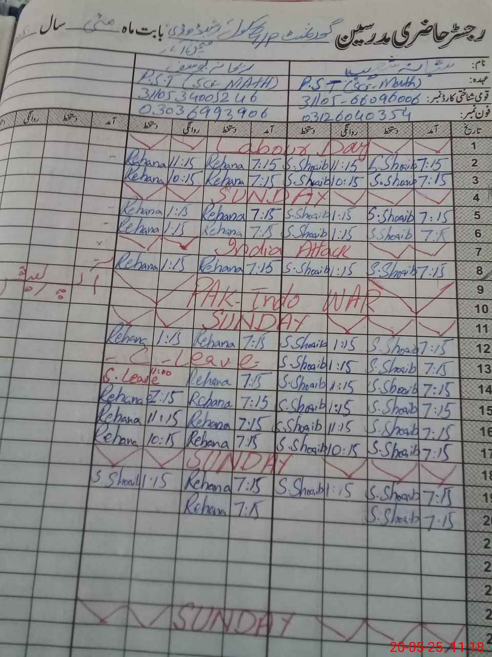 | Name: Sh**** Sh**** Designation: (School Headmaster's/Headmistress's) PST Phone/Cell Number: 03**** |