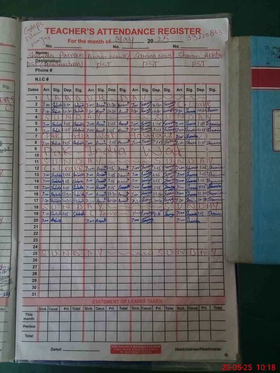 | 33**** | Mu**** Ha**** | PST | Regular | 0 | 0 | 0 | 0 | 0 | 0 | 0 | 0 | 0 | Absent (Un-Authorized) |