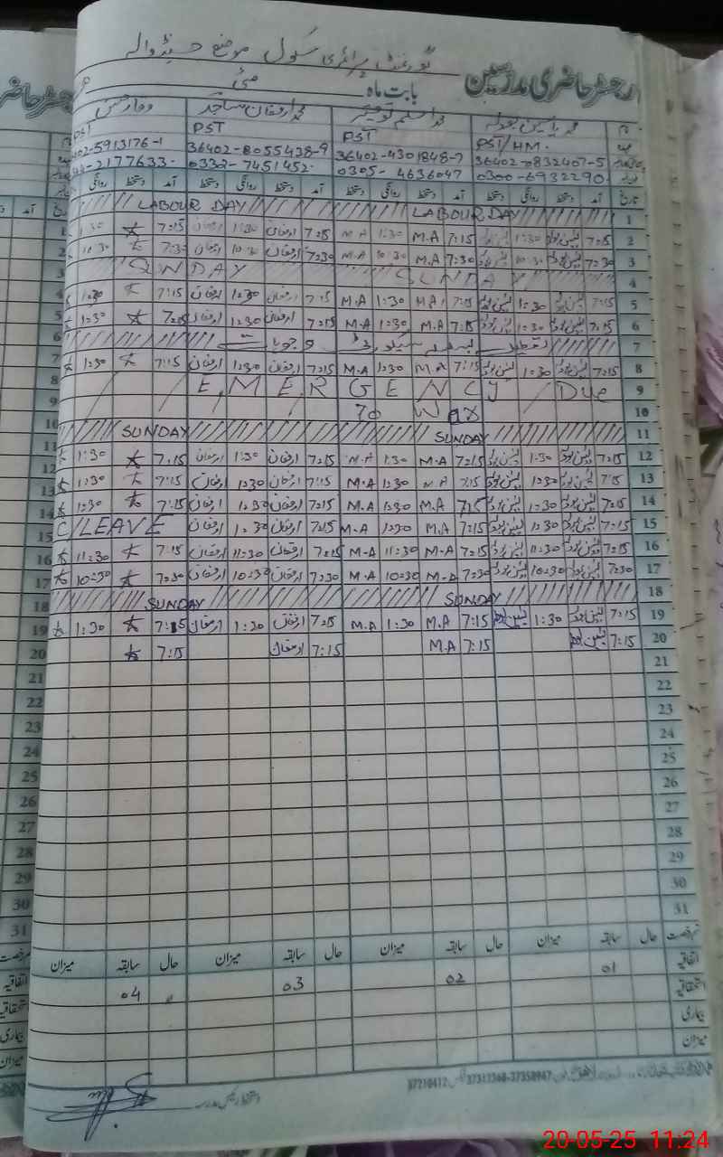 | CNIC | Full Name | Designation | R/C | Absence During Last Calender Month |