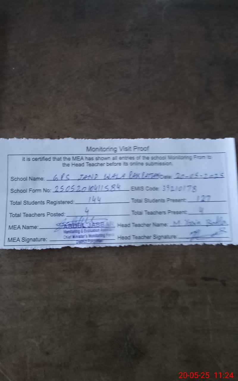 | EMIS Code: 39210178 | Name of School: GPS JAND WALA PO PAKPATTAN | |||