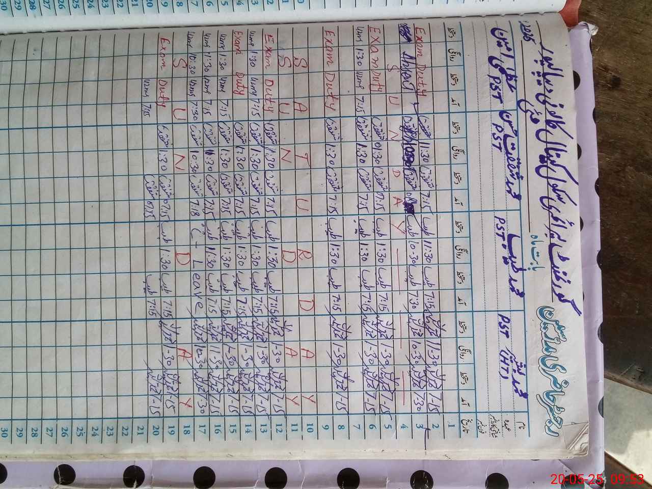 | Leave | Duty | Absent | Maternity | Medical | Ex- Pak |