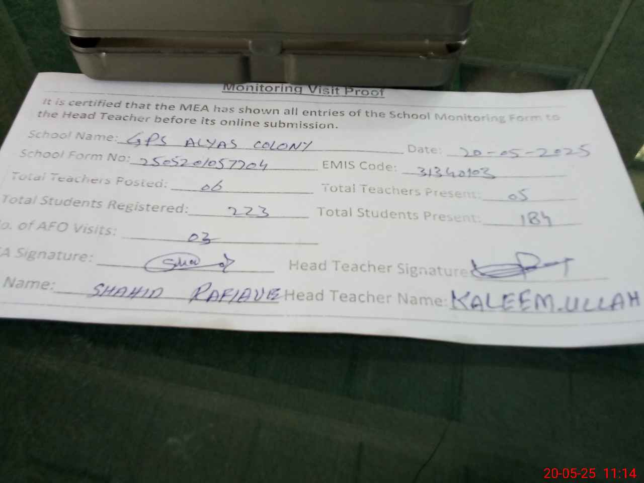 | EMIS Code: 31340103 | Name of School: GPS ALYAS COLONY | |||