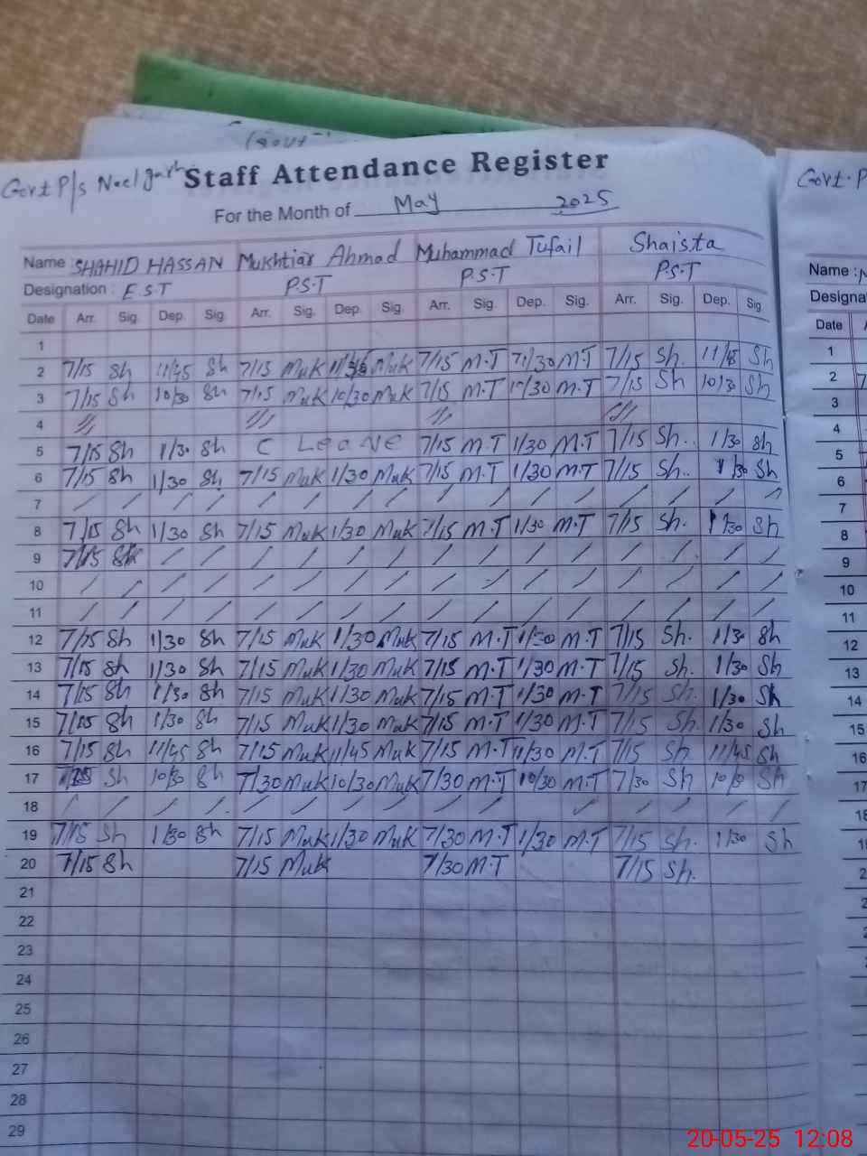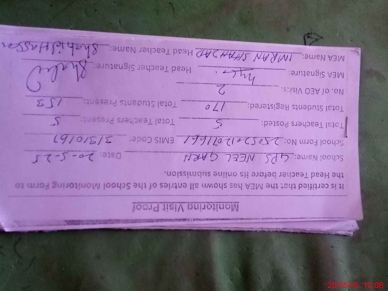| Attendance Register | Head Teacher | MEA with School | Visit Proof |