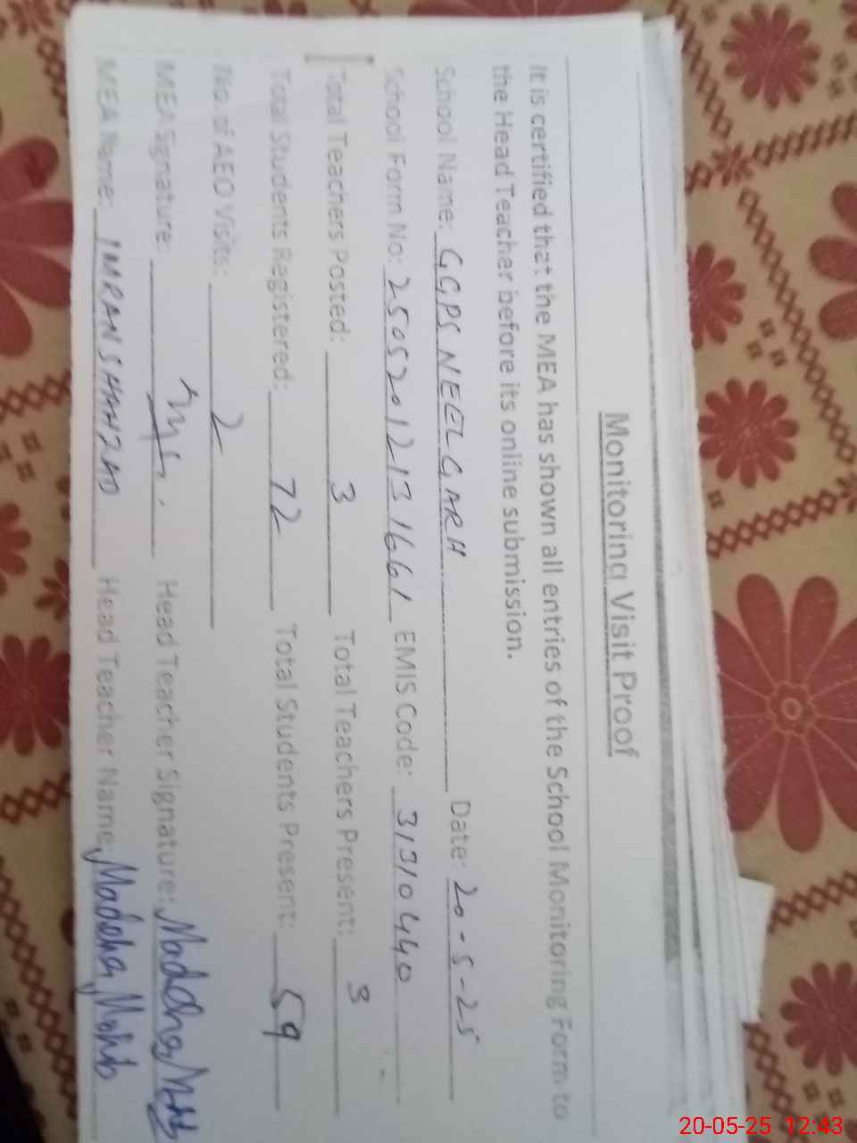 | EMIS Code: 31310440 | Name of School: GGPS NEEL GARH | |||