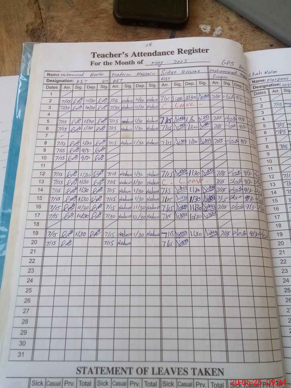 | Name: M.BO**** Designation: (School Headmaster's/Headmistress's) PST Phone/Cell Number: 03**** |