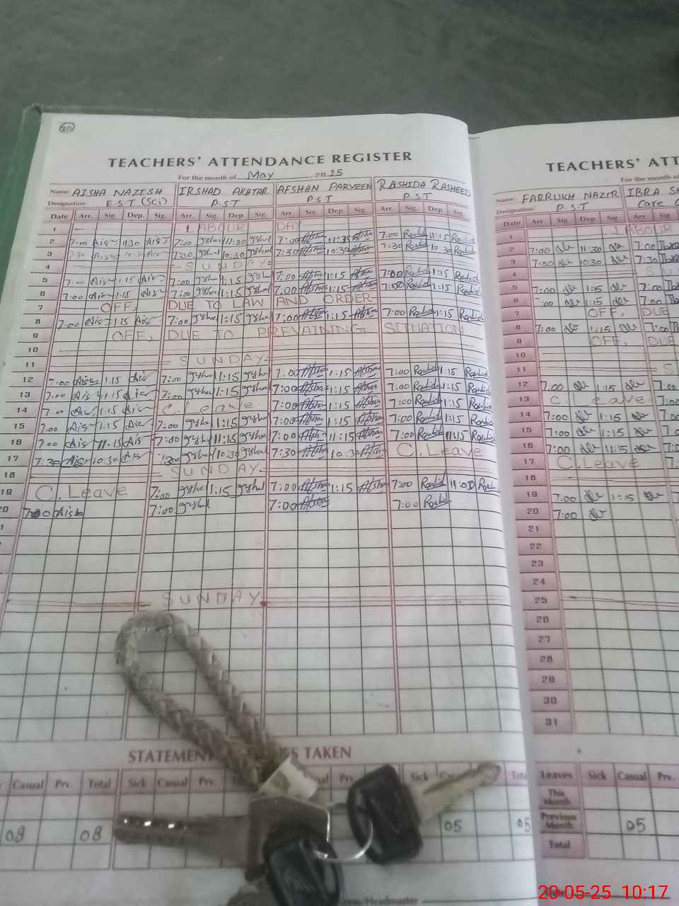 | Leave | Duty | Absent | Maternity | Medical | Ex- Pak |