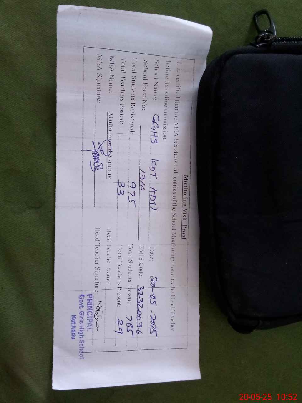 | EMIS Code: 32320036 | Name of School: GGHS KOT ADU | |||