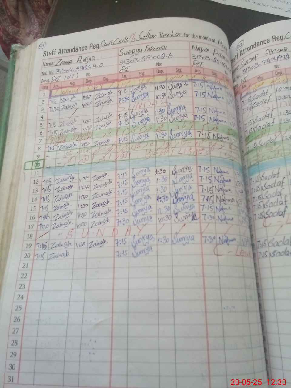 | CNIC | Full Name | Designation | R/C | Absence During Last Calender Month |
