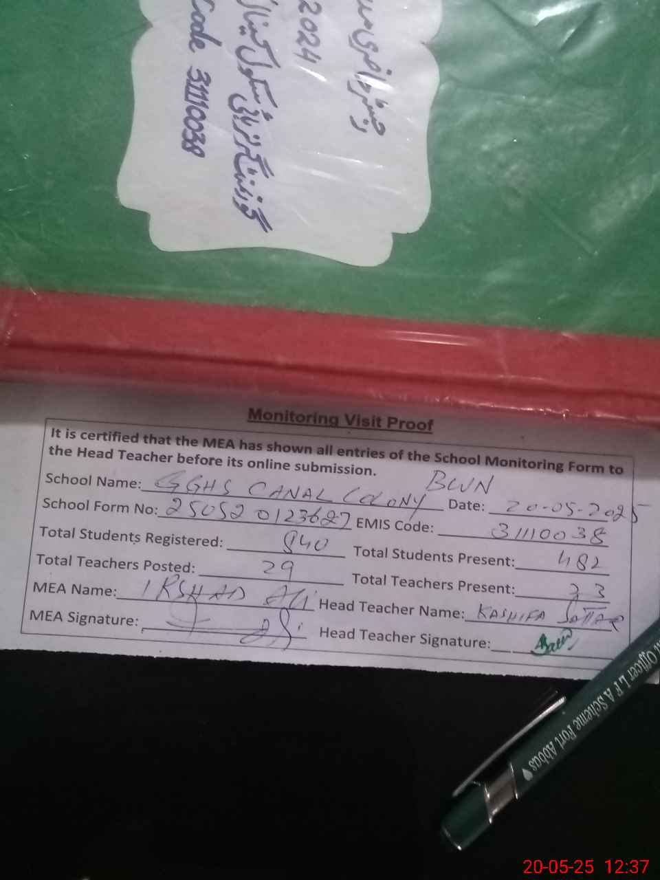| EMIS Code: 31110038 | Name of School: GGHS CANAL COLONY | |||