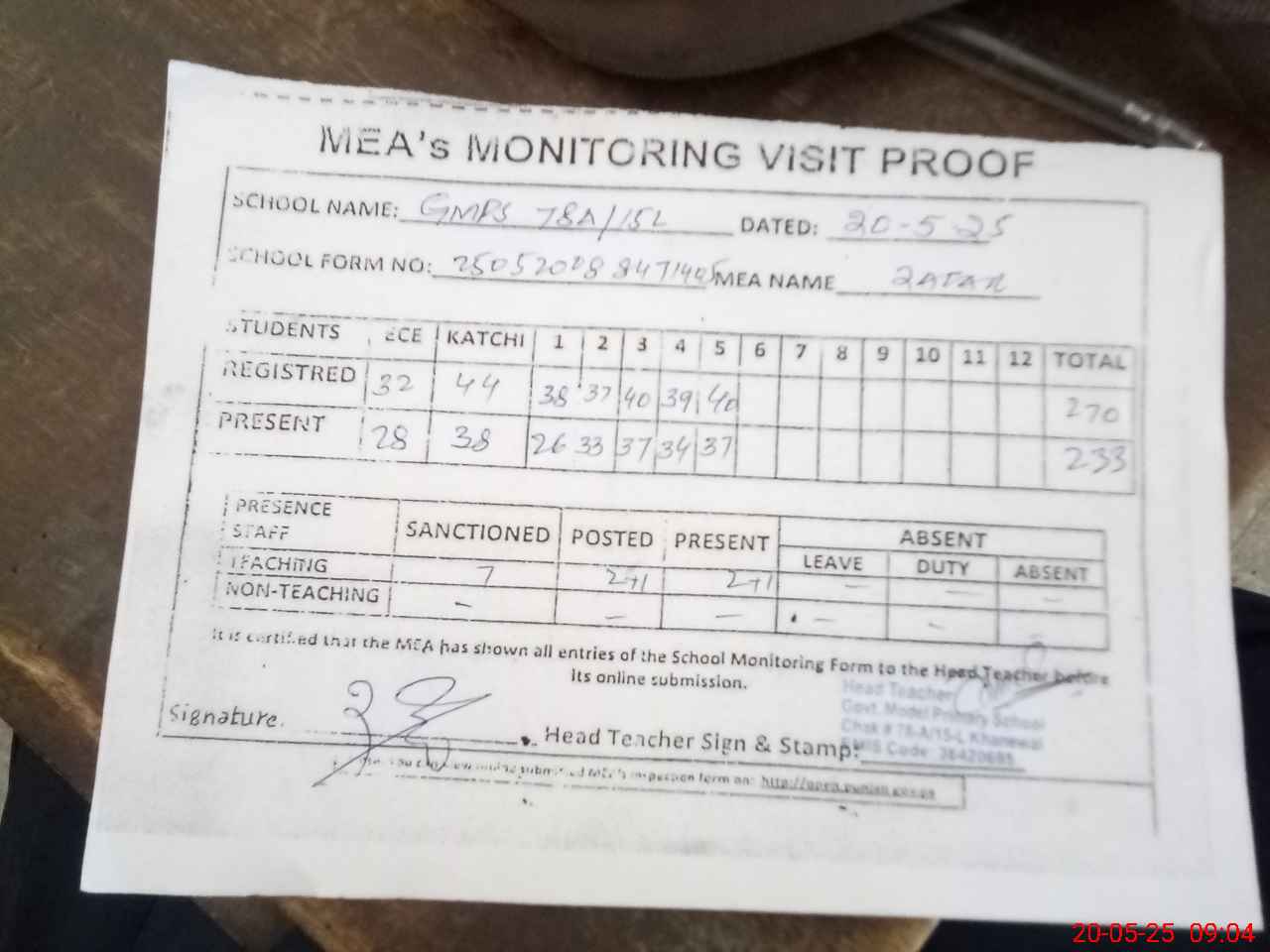 | EMIS Code: 36420695 | Name of School: GPMS 78-A/15-L, KACHA KHUH | |||