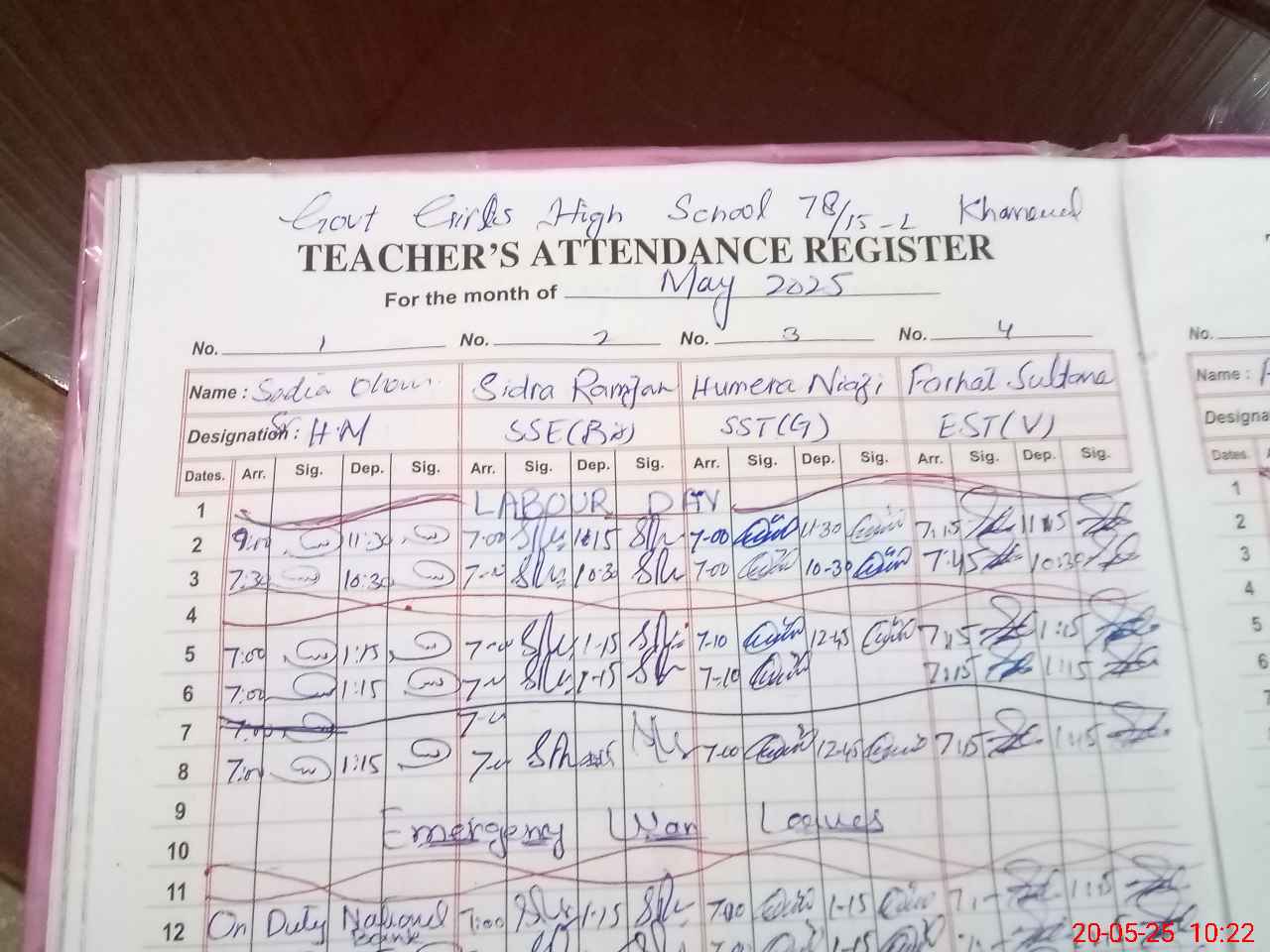 | CNIC | Full Name | Designation | R/C | Absence During Last Calender Month |