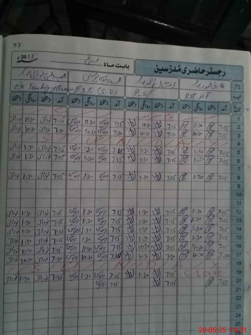 | CNIC | Full Name | Designation | R/C | Absence During Last Calender Month |