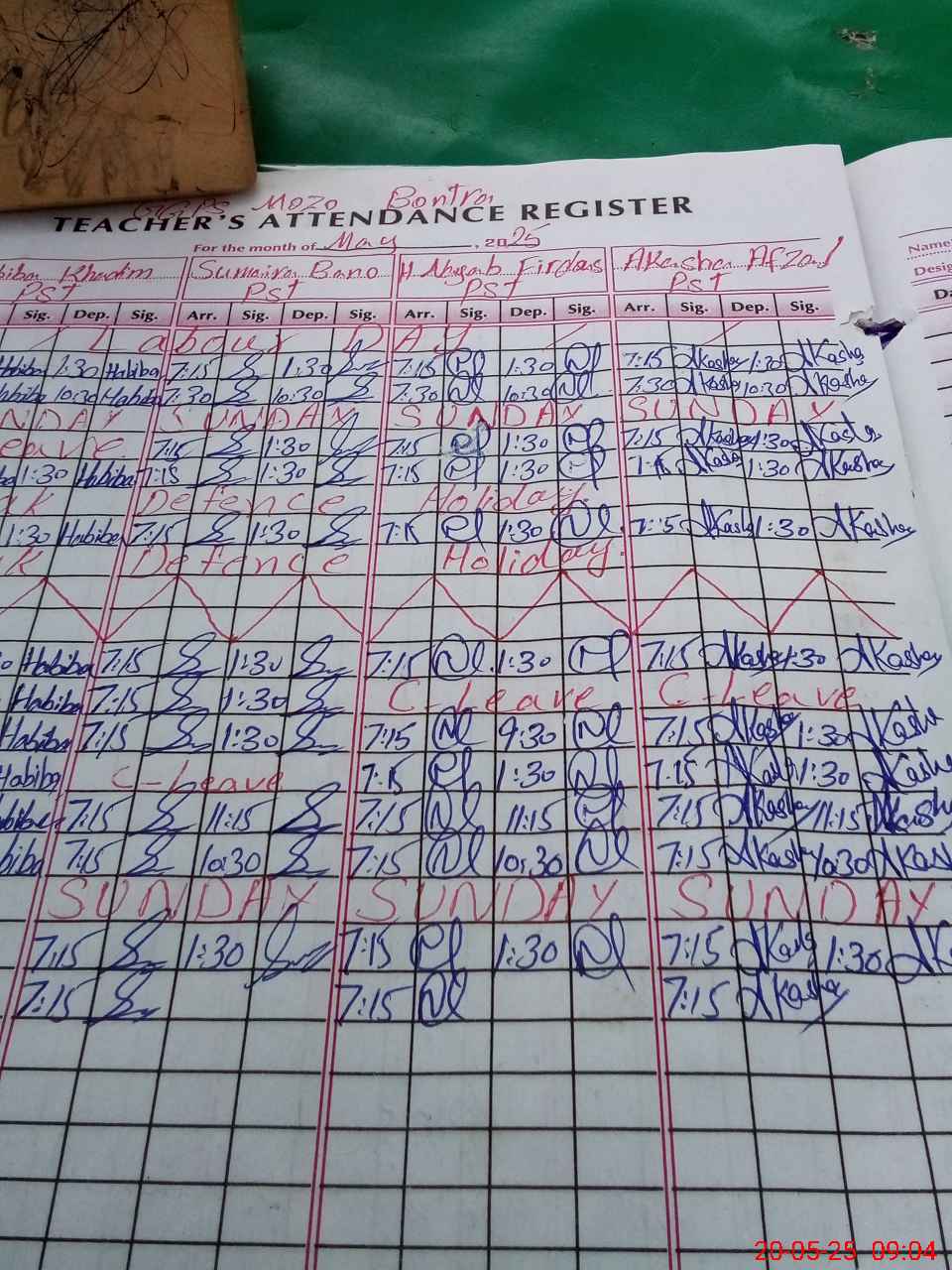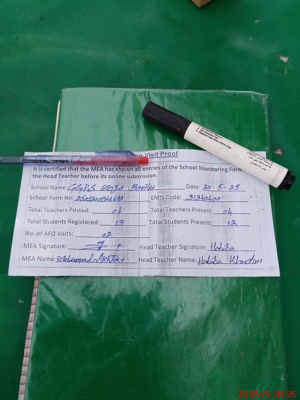 | Attendance Register | Head Teacher | MEA with School | Visit Proof |