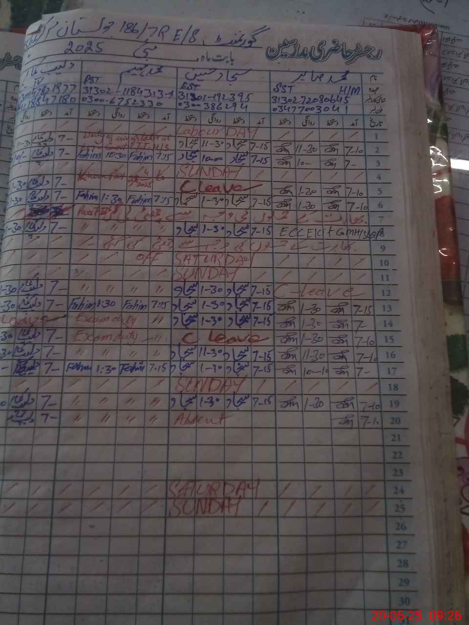 | 31**** | Sa**** Hu**** | 3 | 1 | 0 | 0 | 0 | 0 | 0 | 0 | 0 | 0 | 0 | Absent (Un-Authorized) |