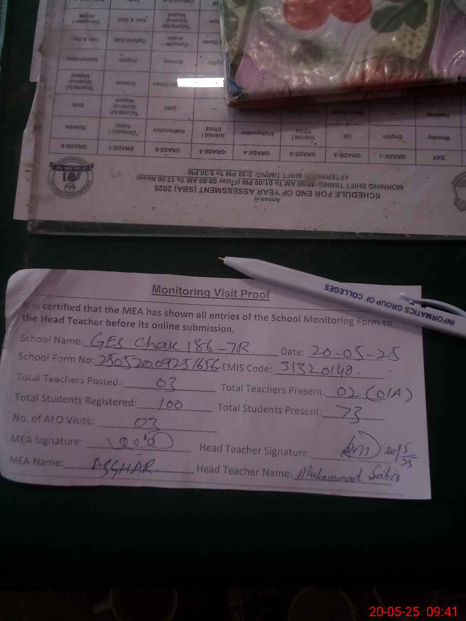 | EMIS Code: 31320140 | Name of School: GES CHAK 186/7R | |||