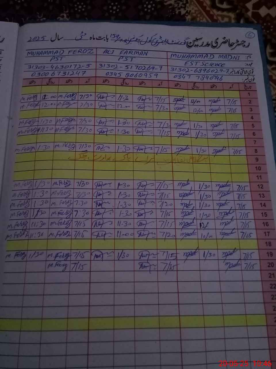 | CNIC | Full Name | Designation | R/C | Absence During Last Calender Month |