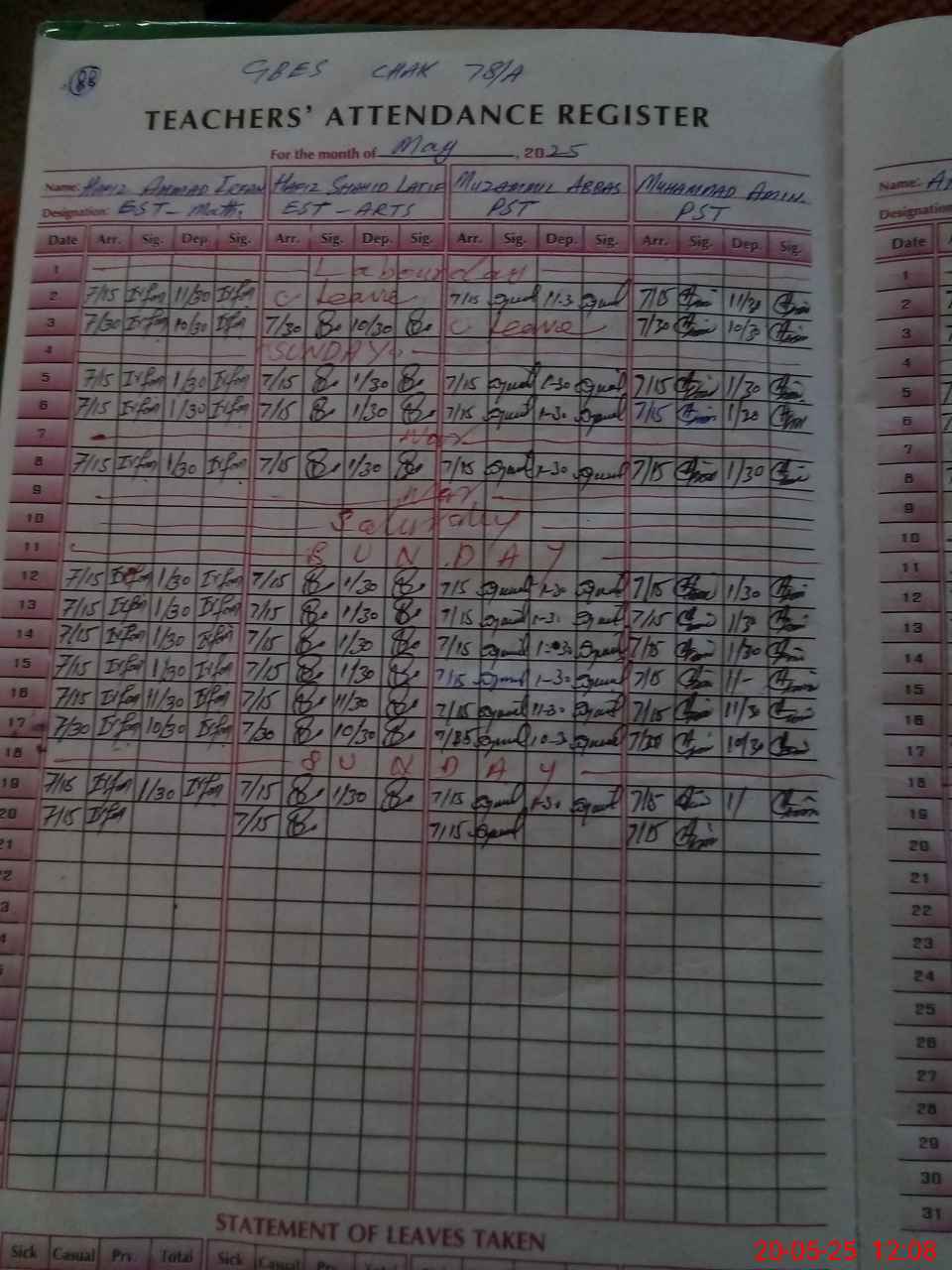 | EMIS Code: 31320133 | Name of School: GES CHAK 78/A | |||