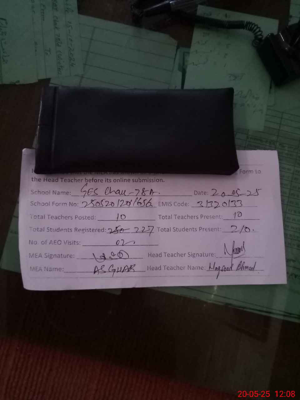 | Attendance Register | Head Teacher | MEA with School | Visit Proof |