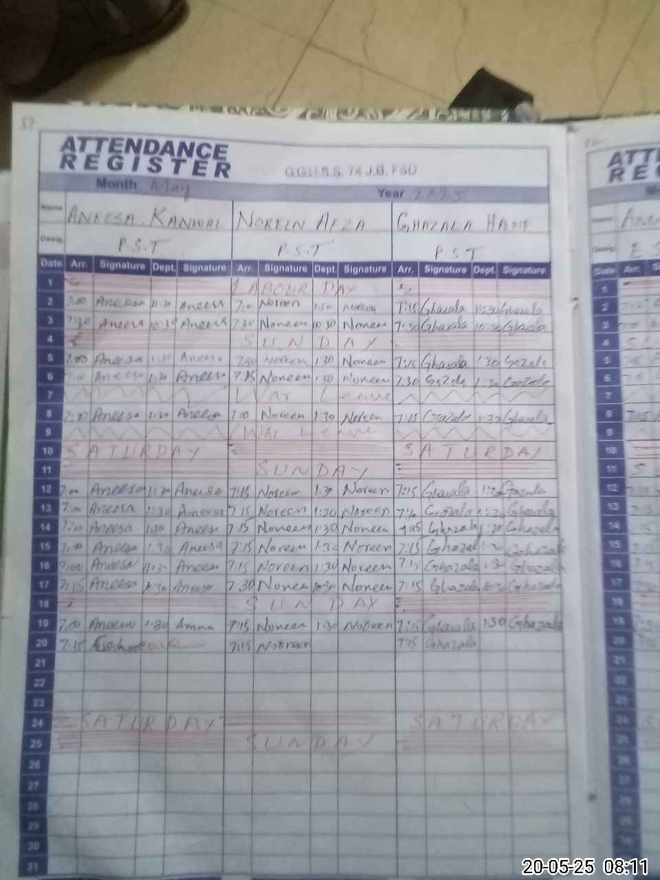 | 33**** | Sh**** Sa**** | SST | Regular | 0 | 0 | 0 | 0 | 0 | 0 | 0 | 0 | 0 | Exam Duty |