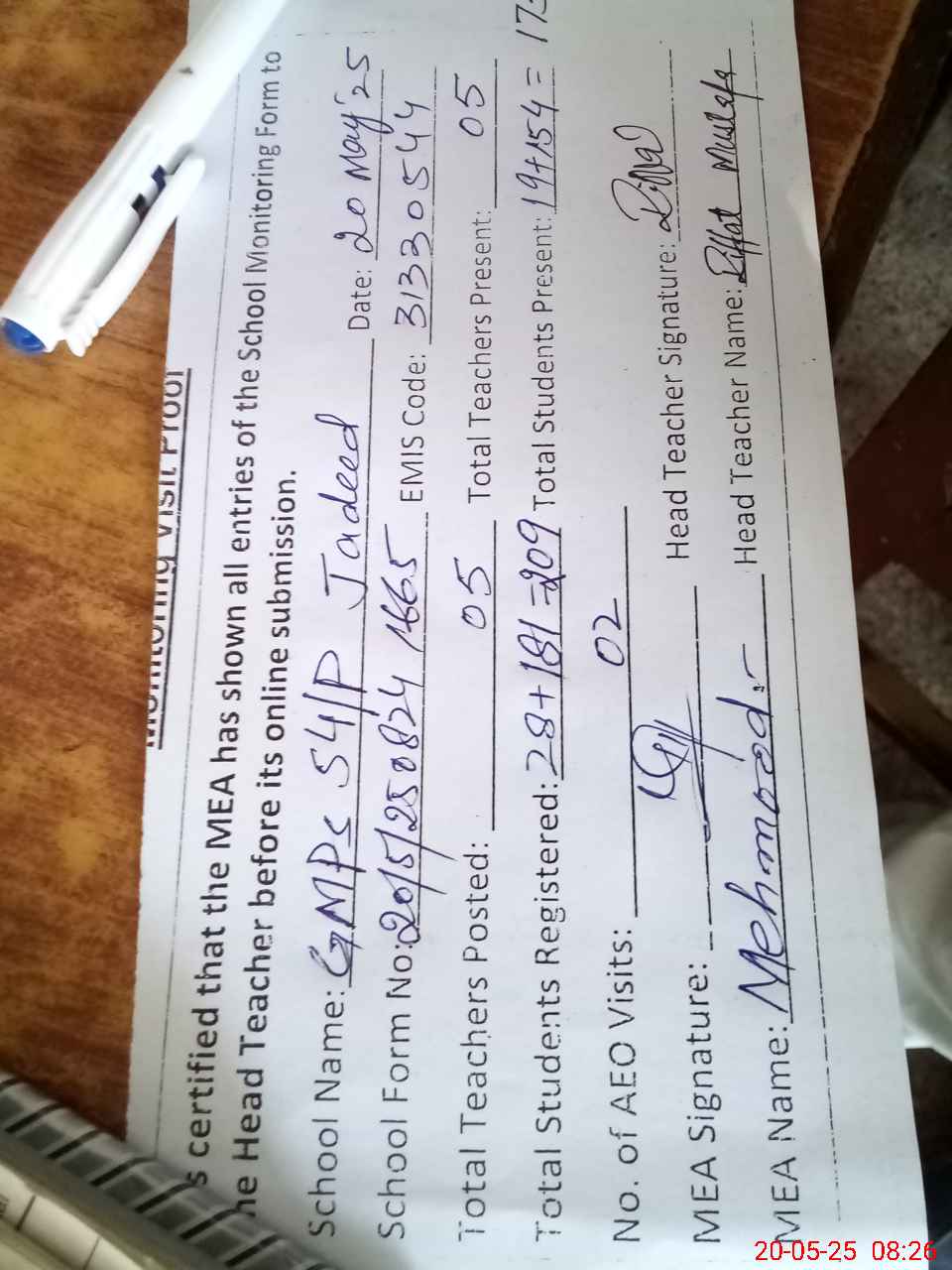 | EMIS Code: 31330544 | Name of School: GMPS 54/P JADEED | |||