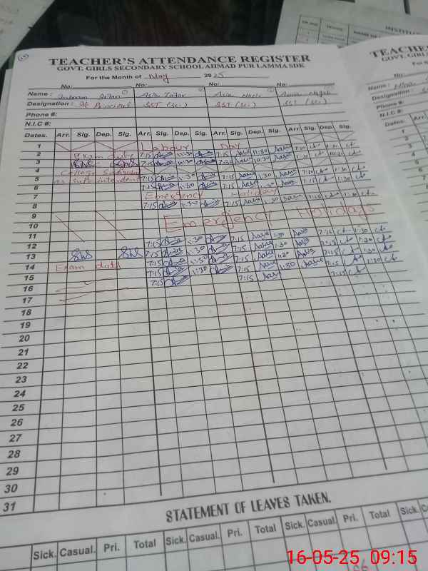 | 31**** | Sh**** Ir**** | Regular | 0 | 4 | 0 | 0 | 0 | 0 | 0 | 0 | 0 | Exam Duty | |
