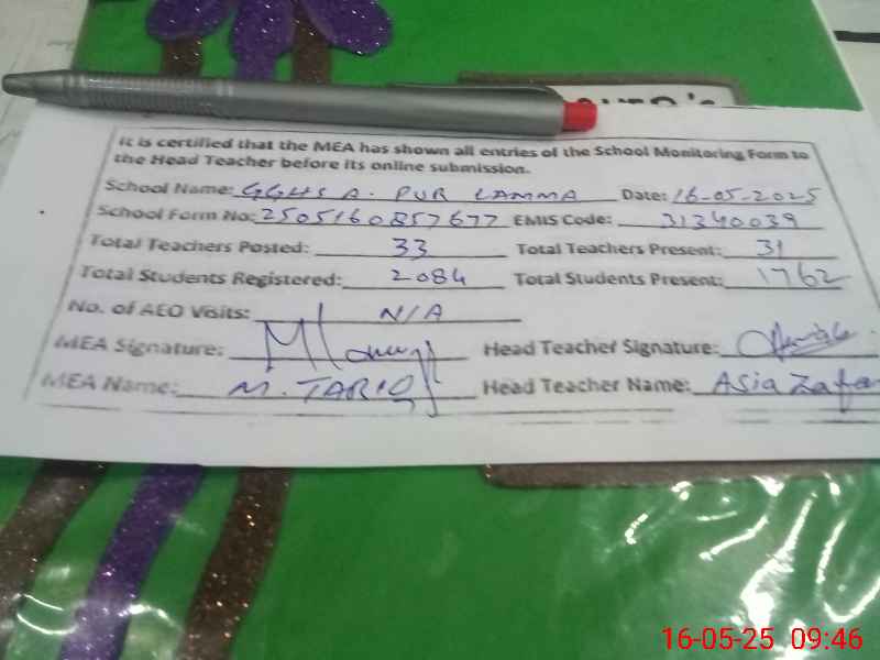 | EMIS Code: 31340039 | Name of School: GGHS AHMAD PUR LAMMA | |||