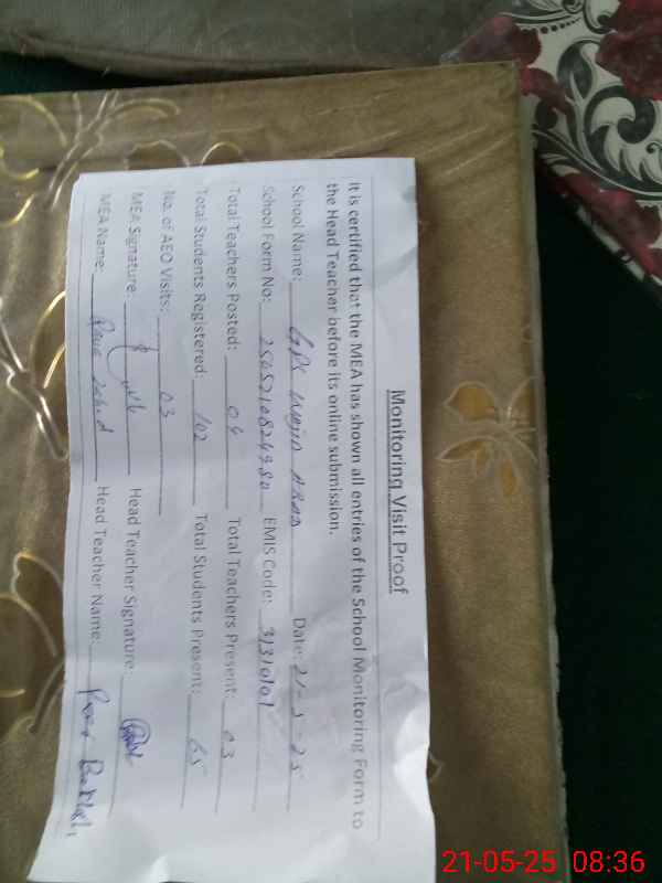 | Certified that this School was Inspected by the Undersigned MEA/DMO Today and the Information Stated Above is as Per Record. | |||||