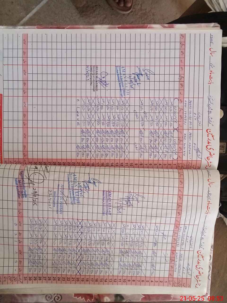 | CNIC | Full Name | Designation | R/C | Absence during last cal. month |